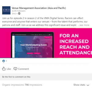 The Venue Management Association (VMA) is the leading professional network for venue industry professionals across the Asia-Pacific.