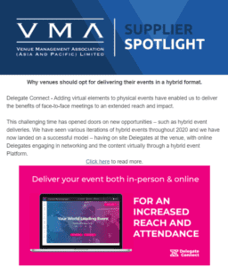 You will be the exclusive Supplier Spotlight in your edition of the eDM. The VMA will only offer 25 Supplier Spotlight Advertising opportunities per calendar year, and ensure scheduling of them does not result in competitive posts back-to-back, thereby given you clear air in positioning your brand with our members and industry.