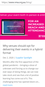 The post sits on the VMA website and remains prominent on the first page of blogs for on average 5 months.