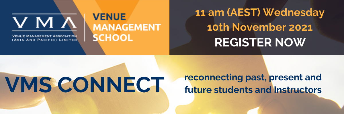 The VMA is excited to launch VMS Connect – a two-hour interactive session to be held on Wednesday, 10 November 2021 commencing 11.00 AM (AEST). The event looks to facilitate the gathering of the industry and provide professional development opportunities across Australia and New Zealand as a result of the cancellation of the 2021 Venue Management School and Leadership Institute.